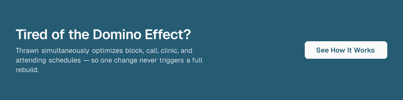 If your program is still absorbing the scheduling burden onto a chief resident every year, a consultation with Thrawn is worth the conversation.