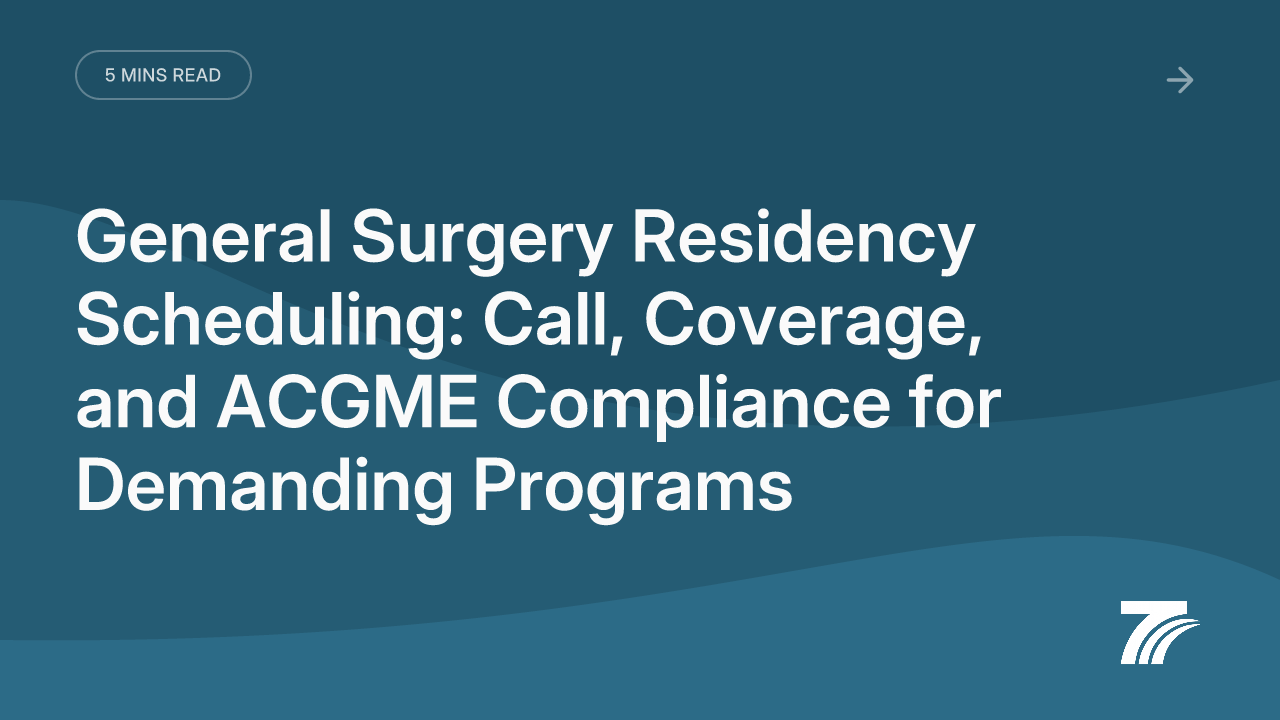 General surgery has always been the test case for how hard residency scheduling can get. Five years of graded responsibility, Q4 call for interns, night float transitions, operative case minimums, and an Accreditation Council for Graduate Medical Education (ACGME) rulebook that doesn't bend — the complexity is real, and the stakes are high.
