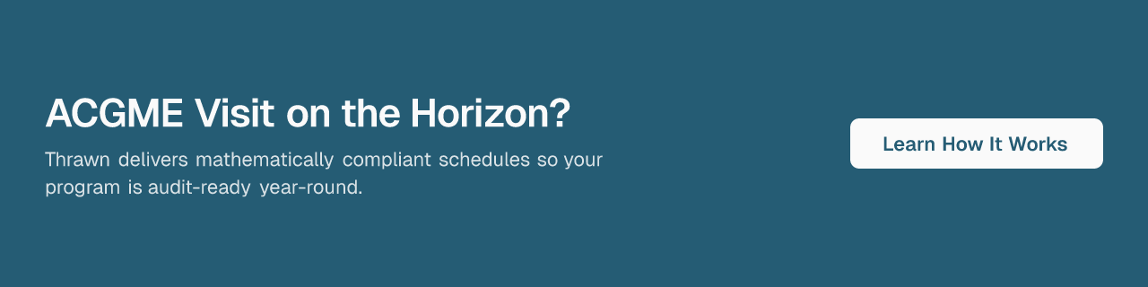 Programs at multiple top-20 academic health systems have already moved to optimization-based scheduling. If yours is still running on spreadsheets, a conversation with Thrawn is worth having before the next site visit notification arrives.