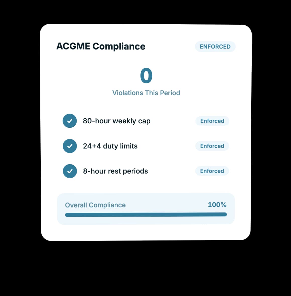 Every schedule Thrawn delivers is documented against the ACGME duty hour rules that constrained it. Program directors and GME administrators receive finished schedules they can defend — not spreadsheets stitched together the night before a site visit.
