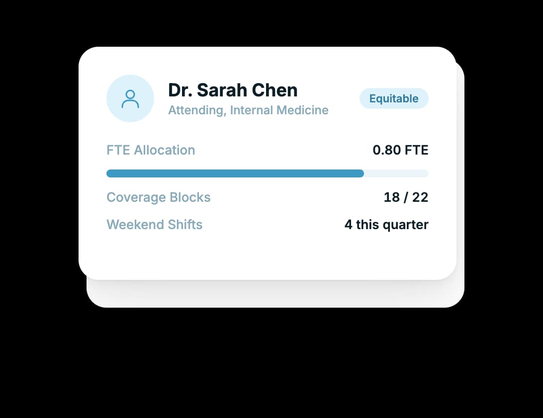 Thrawn encodes each attending's FTE percentage and contractual obligations directly into the optimization engine. Assignments are generated to respect these boundaries mathematically, not checked manually after the fact. See how this works for [program directors](/uses/scheduling-for-program-directors).
